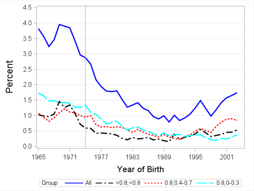 Abbildung 4: Rückgang der einseitigen und beidseitigen Sehbeeinträchtigung nach Einführung des Screening Programms