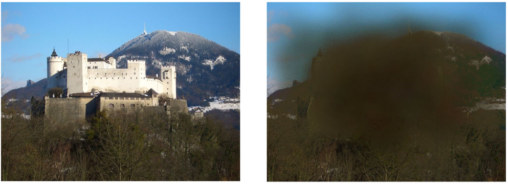Abbildung 1 - Links normales Sehen. Rechts: Das Sehen bei fortgeschrittener AMD