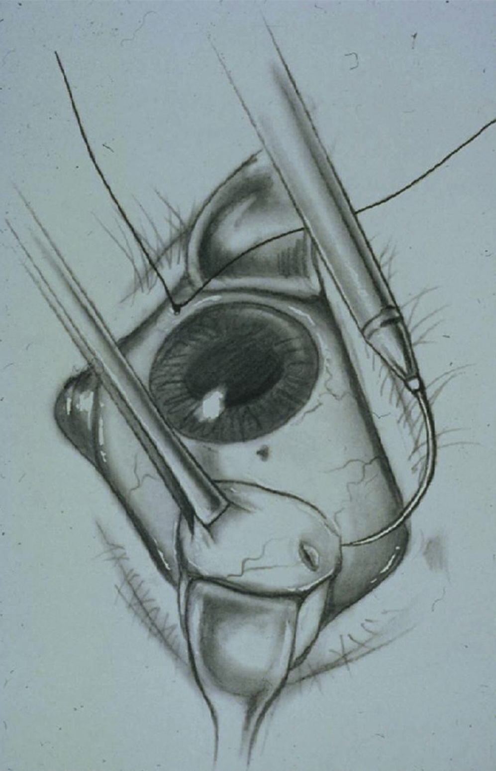 Abbildung 4: Historische Operationsmethoden der Netzhautchirurgie – Einführung der intraokularen Luftblase durch Rosengren