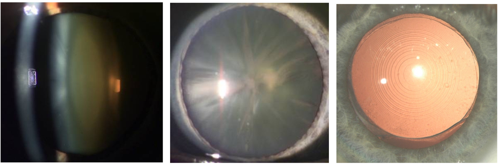 Abbildung 2: Kerntrübung und Rindentrübung links und Diffraktive Multifokale Intraokularlinse rechts