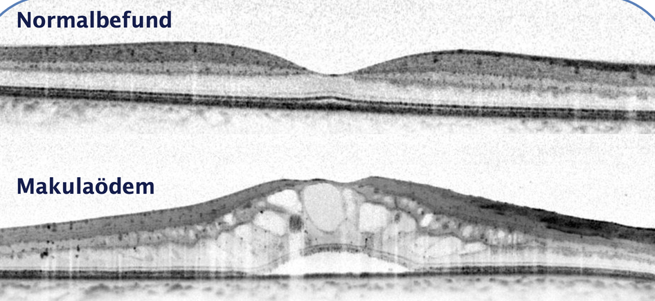Abbildung 1: Normalbefund (oben) und Makulaödem (unten)