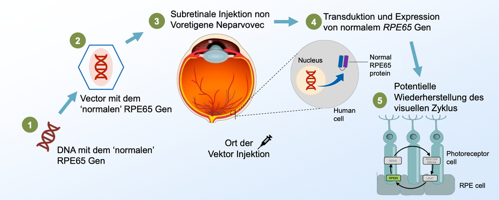 Abbildung 4: Verabreichung und Wirkungsweise von Voretigene Neparvovec